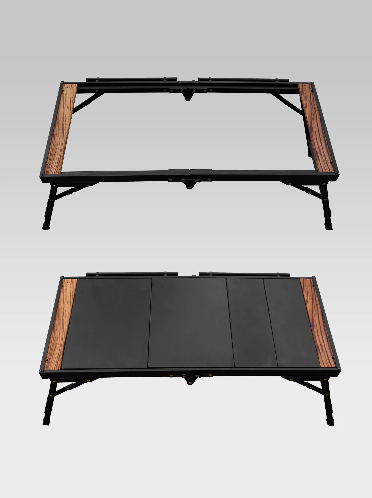 こちらは「IGT規格」のテーブルで、バーナーやバスケットなど様々なカスタマイズを楽しめると同時に、IGT規格のテーブル特有の「コンパクト収納できない」という課題を解消しています。