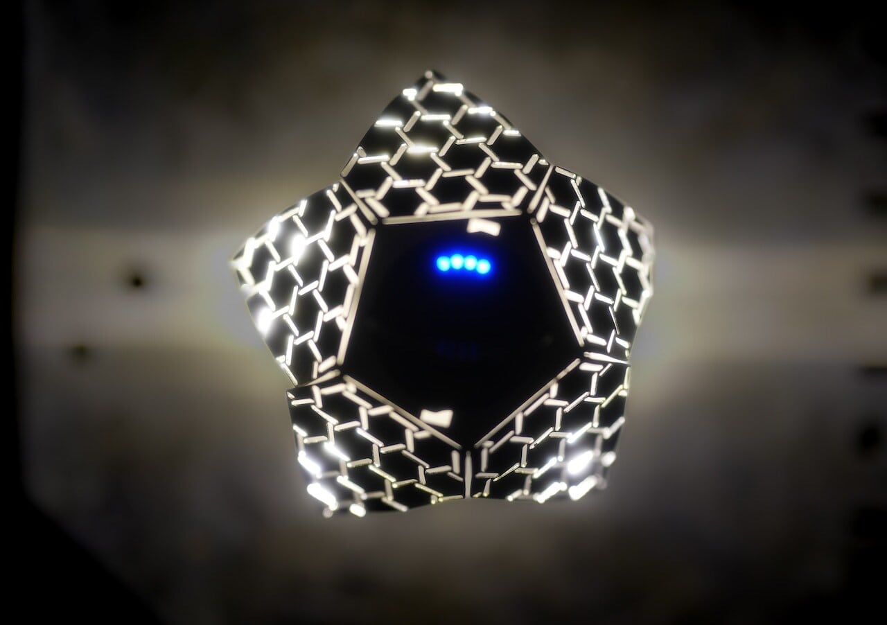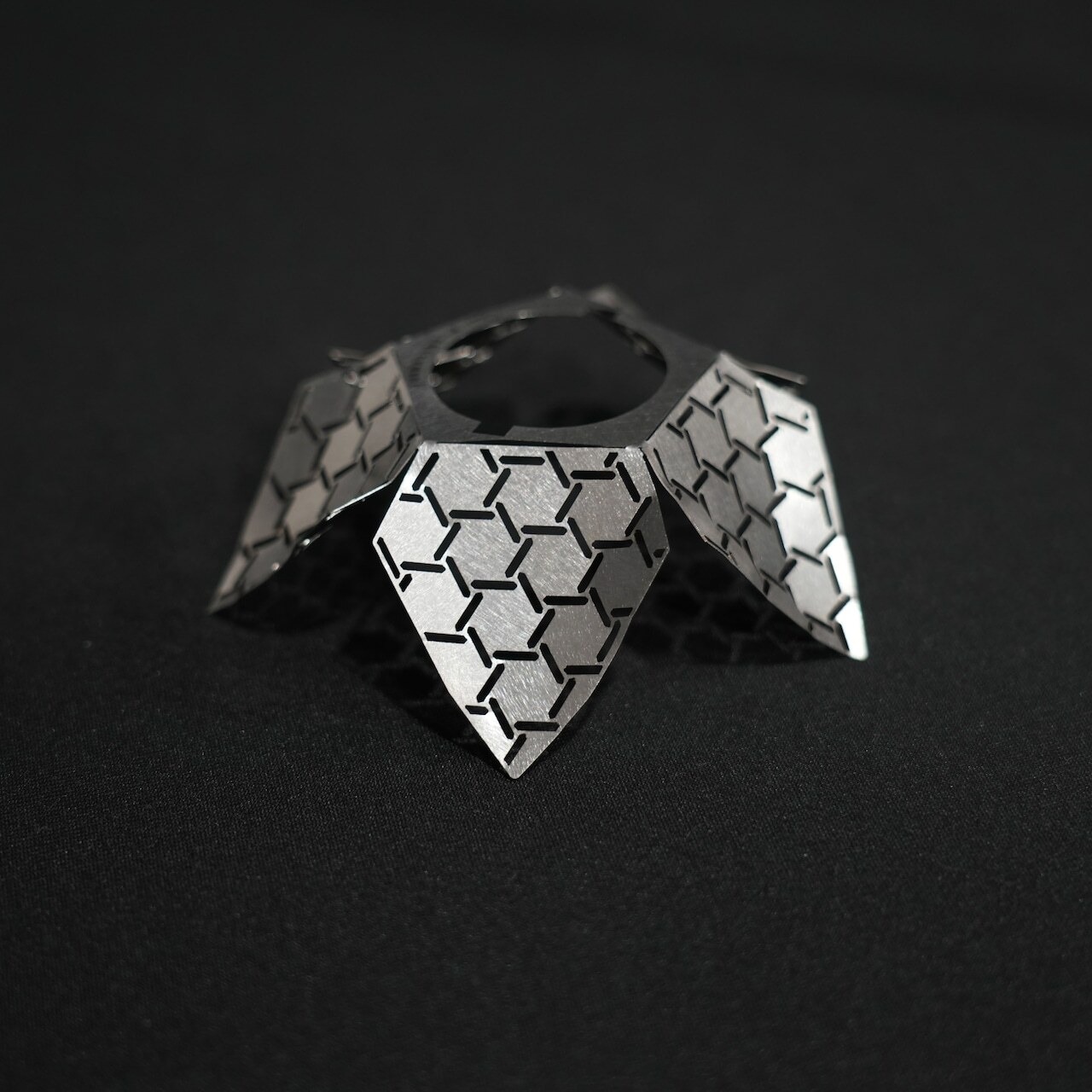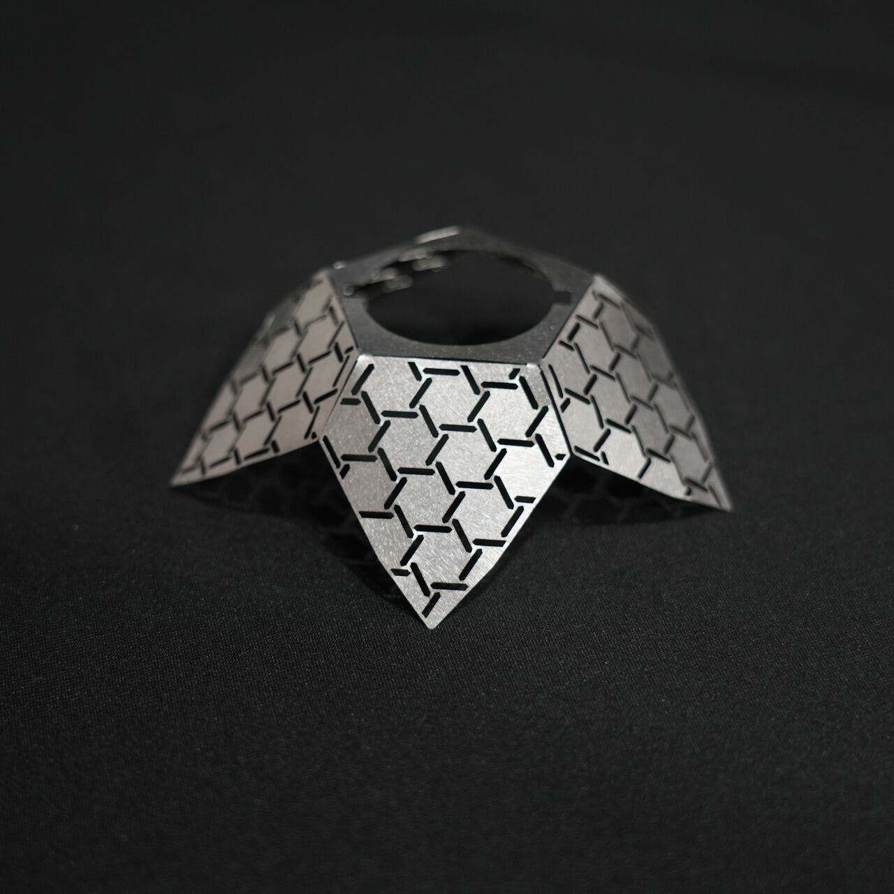 ヘキサラティスは直訳すると【六角格子】で、六角形が格子状に連なっています。また、その六角形は外径に存在する特殊な長穴により擬似成形されています。