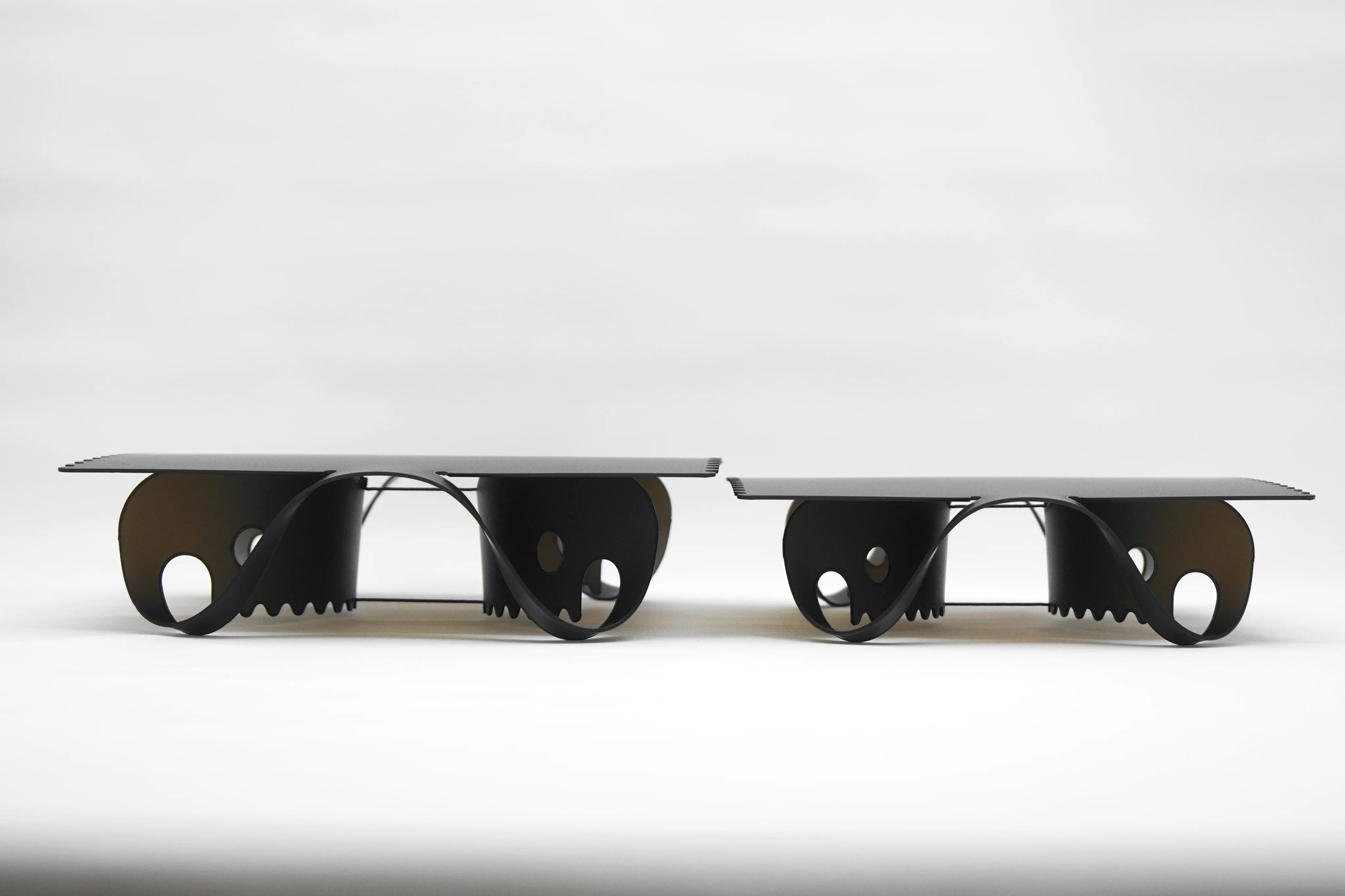 たった1枚から成るシンプルな構造で、紐で脚を固定し立体化するユニークなデザインは、今までになかった新しい形です(意匠登録済み)。