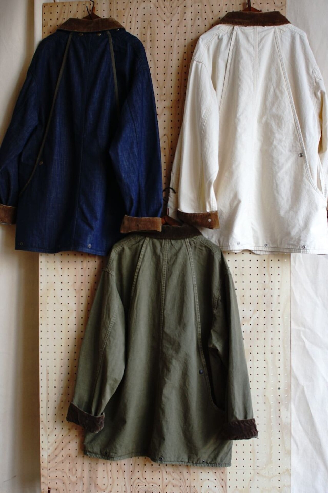 ・SHUTTLE ROOMS CANVAS:希少なシャトル織機で織り上げたキャンバスを製品染めで仕上げ、独自の凹凸感と風合いを実現。効率性よりも味わいを優先したレア素材です。