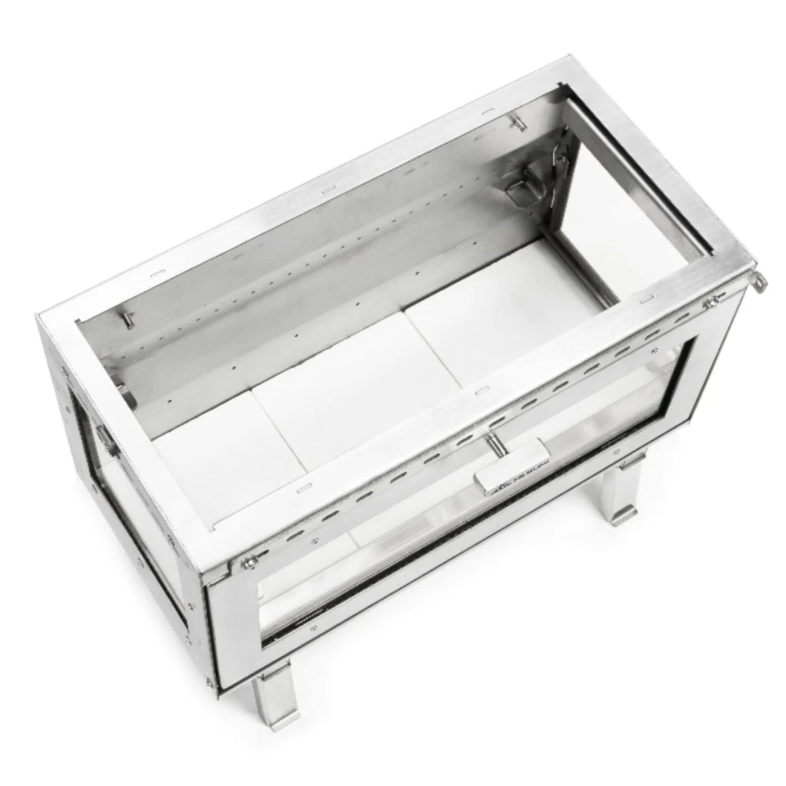 横幅はオーラシリーズと同じ43cm (内寸41cm) とゆとりのある設計で、市販の40cm薪も投入できます。