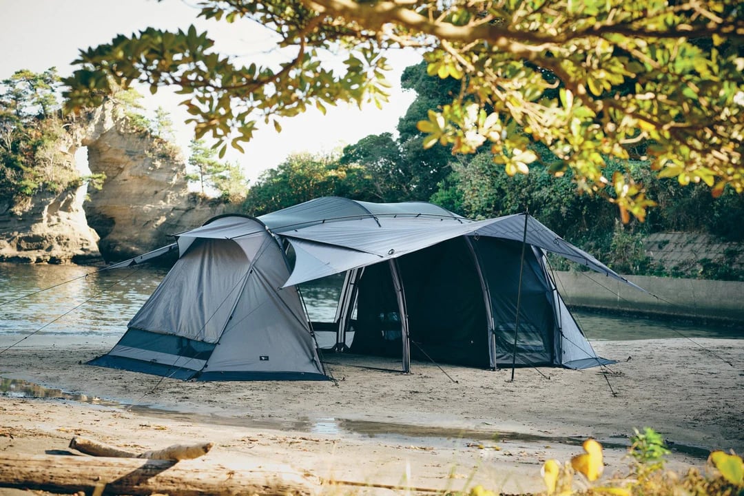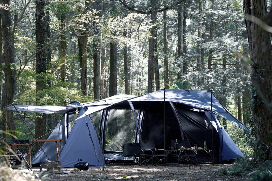今までのファミリー・グループキャンプではリビングと寝室が分かれた2ルームテントや2ポールシェルター、あるいはドームテント+タープというのがお決まりのセッティングでした。