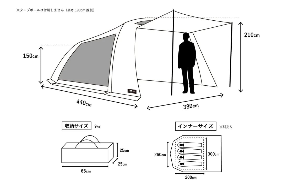 組立時/約330x440xH210cm(ポール、ロープを除く)