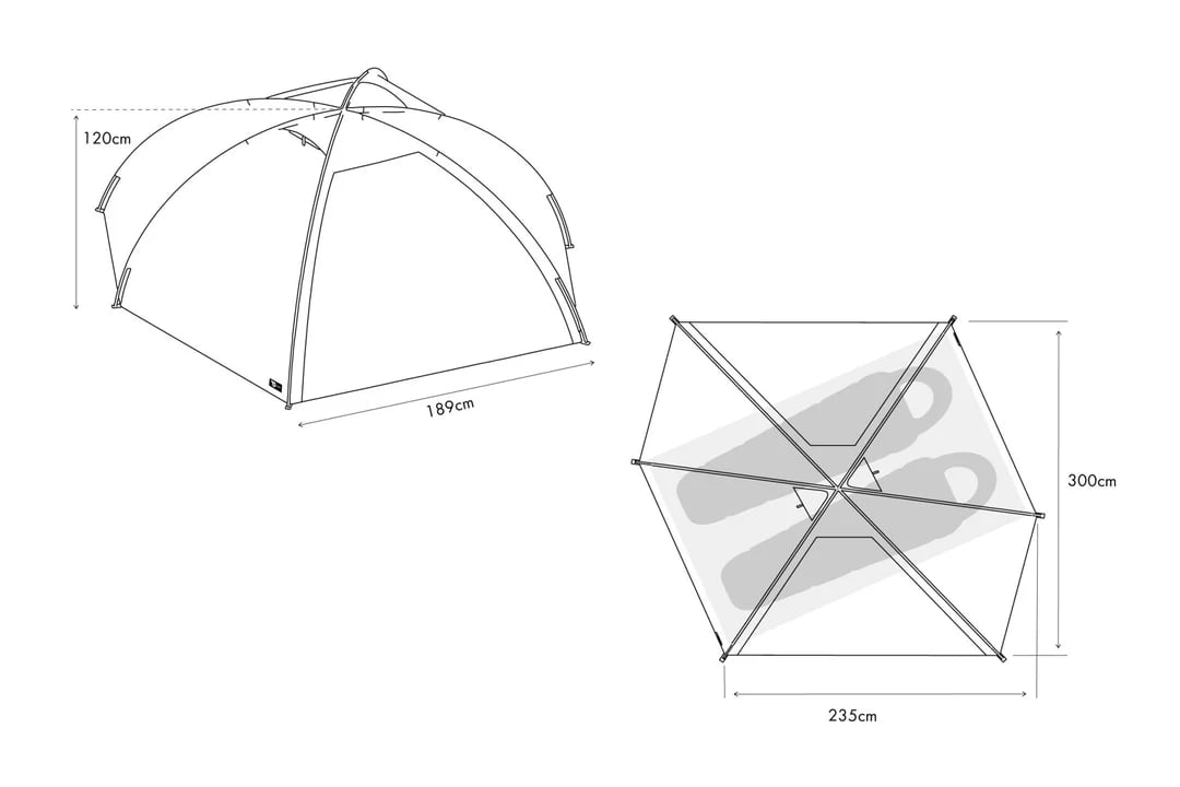 軽量性や設営のしやすさはしっかりキープしながら、室内は2人が就寝できる最低限の広さに抑えることで、持ち運びやすさとの両立を図りました。