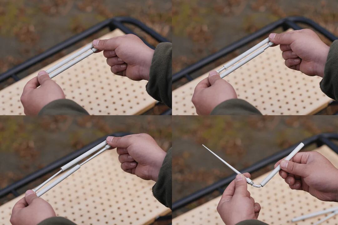 1対の箸をお互いに組み合わせて1つのものとして収納することができ、収納ケースを使用せずとも携帯可能。
