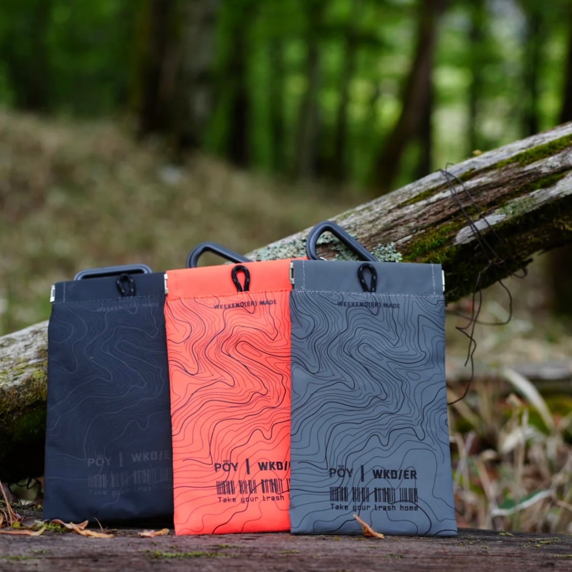 カラビナでバックパックにつけておくと、行動食やウェットティッシュなど登山やハイキング時に出るごみを手元でさっと捨てるのに便利です。