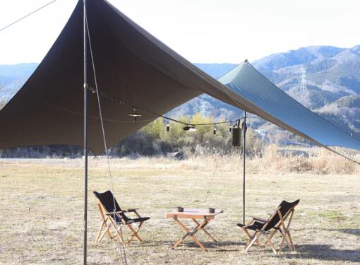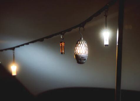 タープ下のお好みの位置にLEDランタンなどを自由に吊るすことができます。