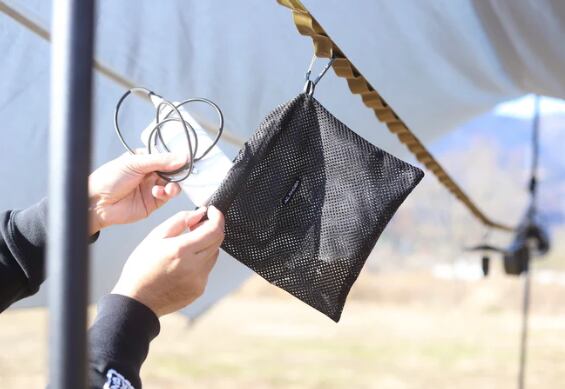 付属の収納袋にモバイルバッテリーなどの小物も入れて吊るすことができます。