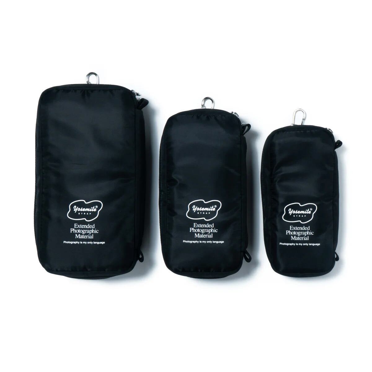 マトリョーシカのような構造で大中小3サイズのケースを目的に応じて幅広い使用方法を可能にしたアウトドアライクなガジェットケース。大切なレンズや機材を守るときには2層,3層と重ねて使用したり1つずつ個別に収納したりと使い勝手の良さがポイント。