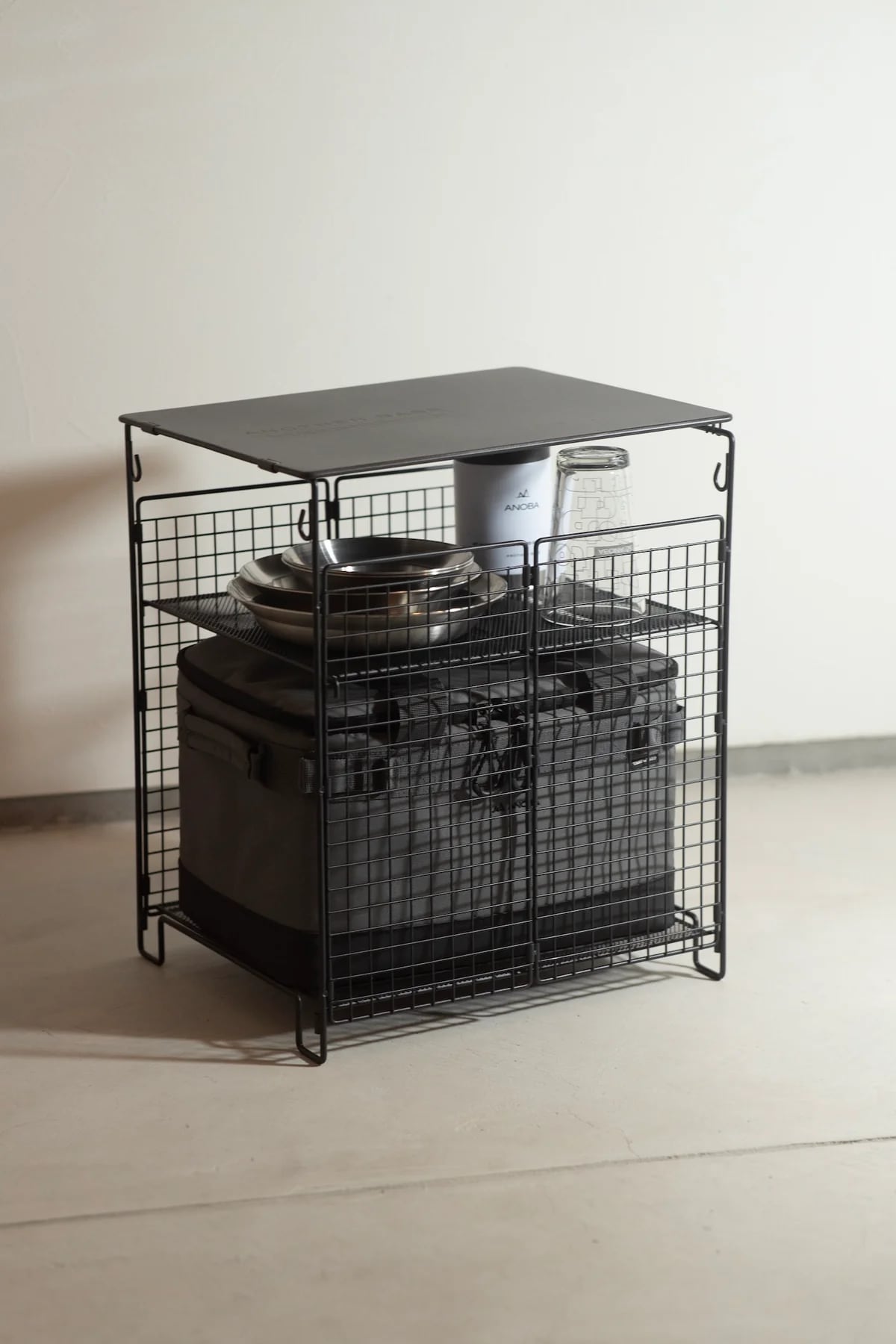 ギアバッグ類の収納ラックにも使え、