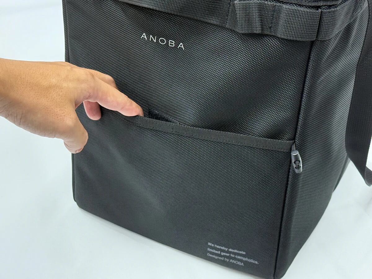 前面にはポケットがあり、予備のゴミ袋など収納可能。開閉は綿ファスナーを採用。