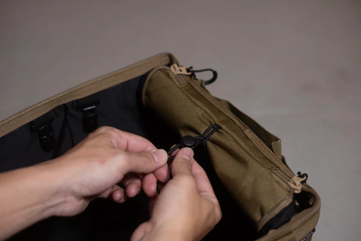 上蓋はコードストッパー付きなので開けたままにして長物を入れて運搬も可能。
