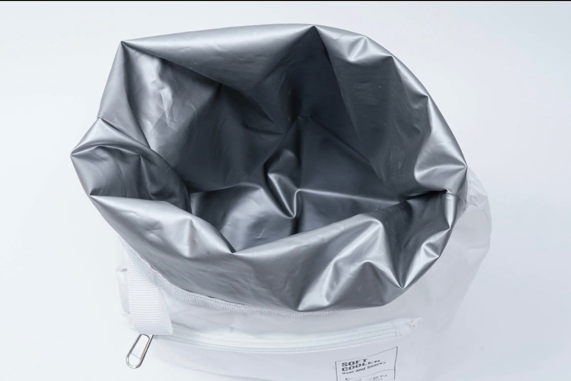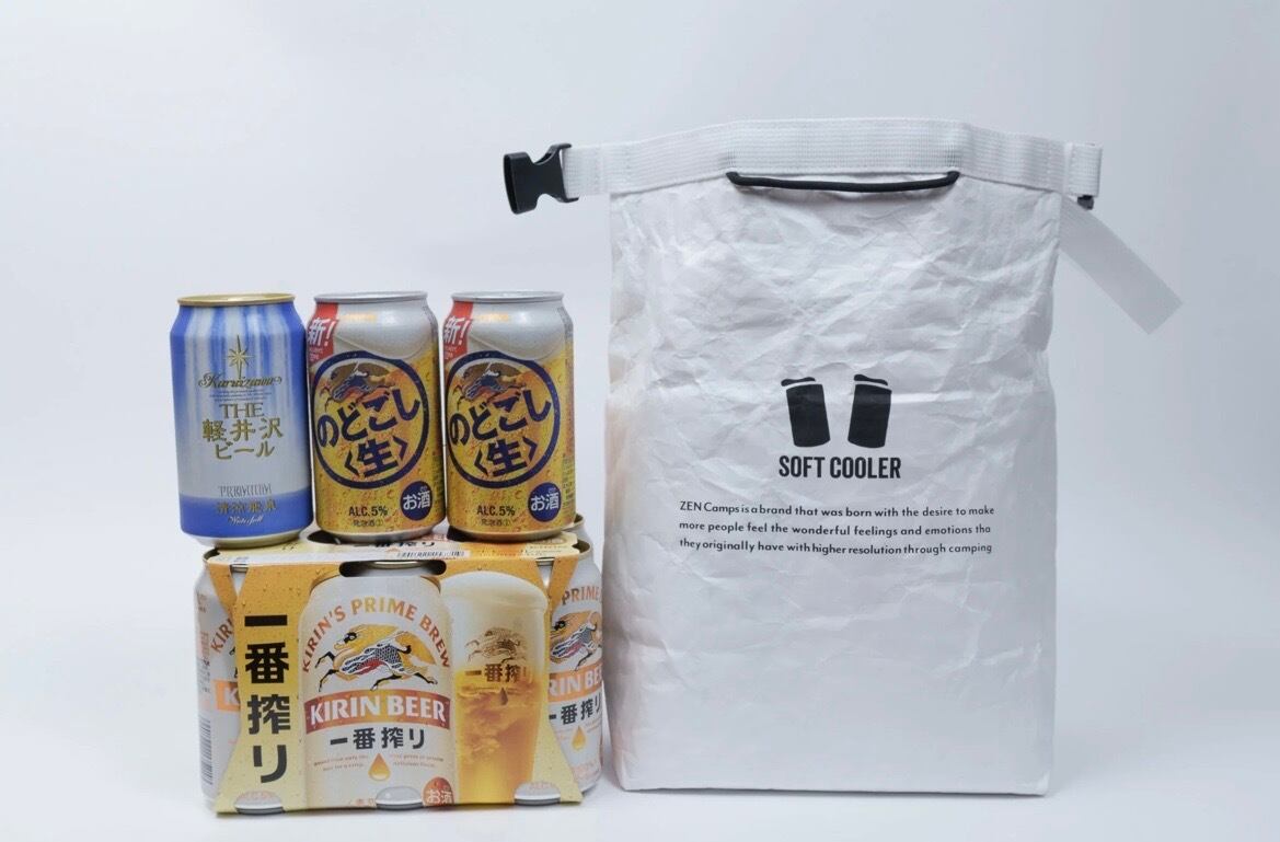 保冷剤や氷と一緒に缶飲料、お弁当箱、おにぎり、サンドイッチ、アイスなどを入れて保冷できるソフトクーラー。
