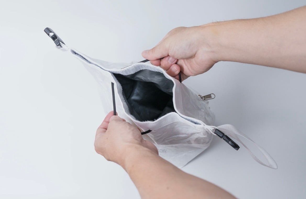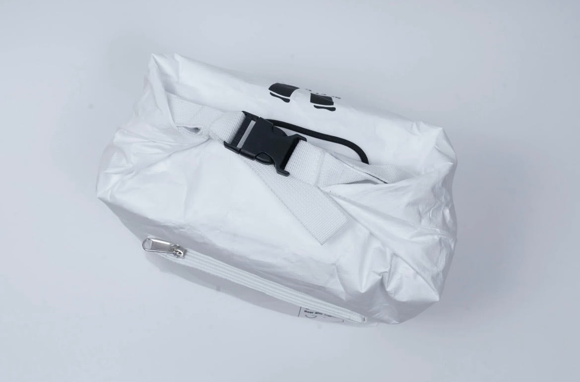 外側の素材にはタイベックを使用しており、上質な紙のような気持ちの良い触り心地に加え、高い強度、防水性、軽量さが特徴です。