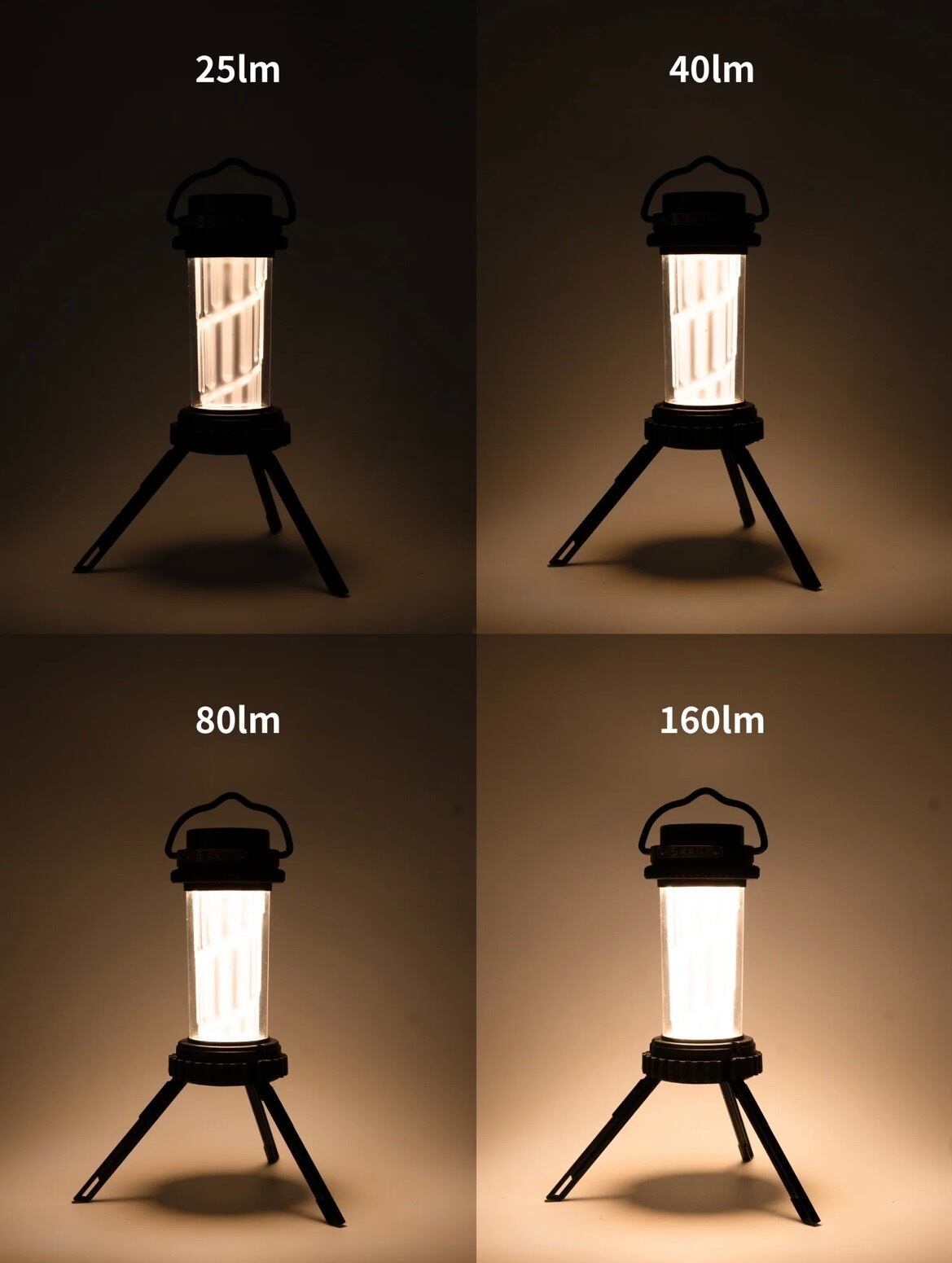 メインライトは明るさを4段階に調整可能。さらに底面にもう1つのライトを備えており、手持ちライトとしても使用することが可能。