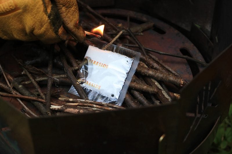 小分けになった袋にそのまま着火することができる便利な着火剤。