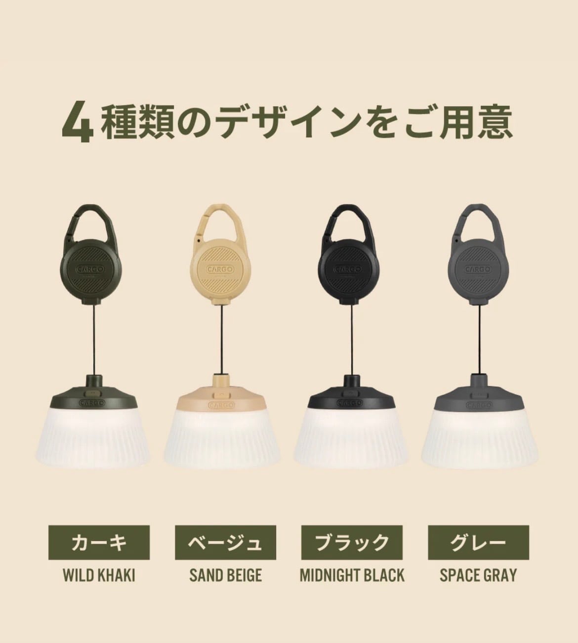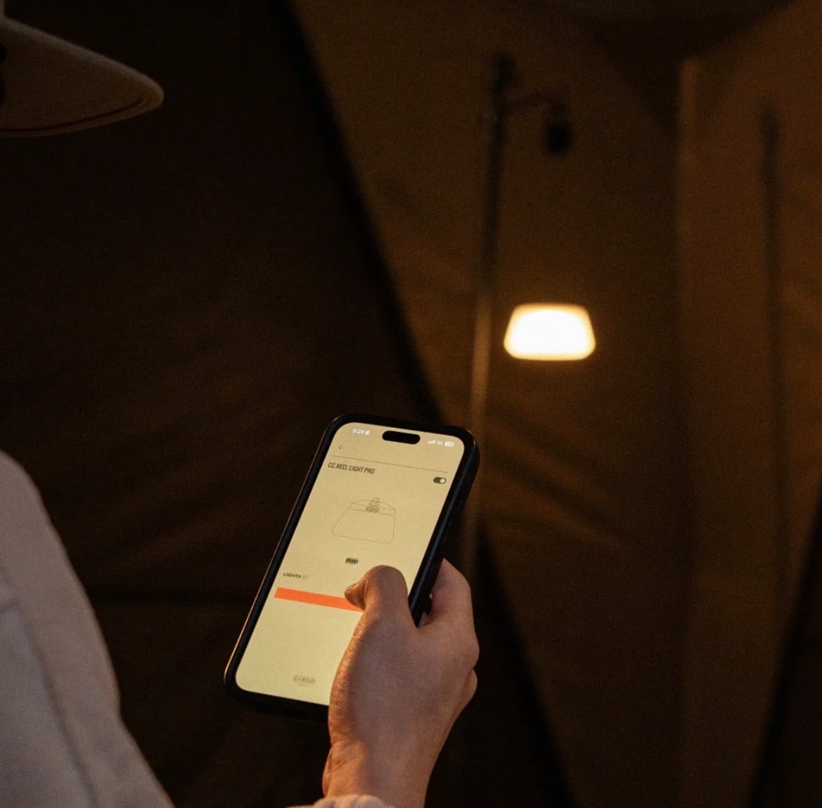 REEL LIGHTは、コンパクトなボディに高出力性能を凝縮し たプレミアムランタンです。 独自開発のフリーリール構造により、高さを0~58cmまで 自由に調整可能。 専用スマホアプリで遠隔操作が可能です。