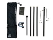 地面に固定する場合、ペグを地面に打ち込みジョイントとペグをつないで設置。ジョイントはお好みの高さに合わせて必要数使用してください。