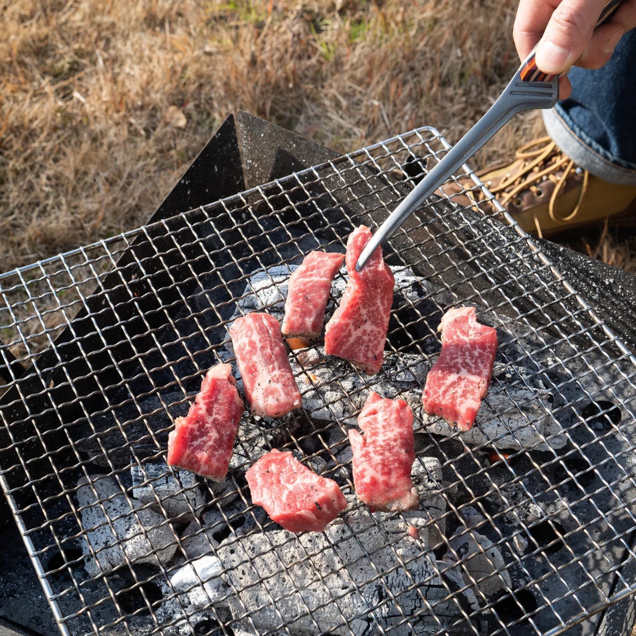 どの方向に置いても先端がテーブルにつかず、非常に衛生的なのでキャンプやアウトドアクッキング、ご自宅での焼肉など、色々なシーンで使用できます。