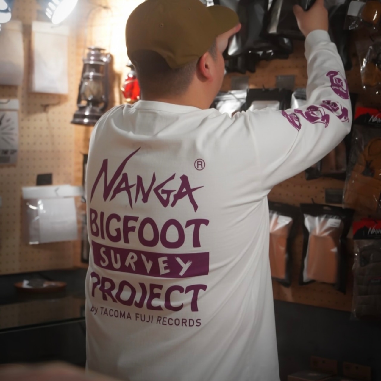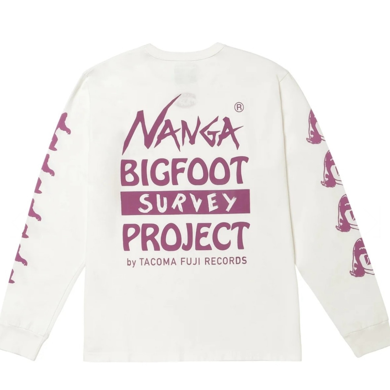 TACOMA FUJI RECORDS のBIGFOOT SURVEY PROJECT ロゴとNANGAのロゴをプリントした30TH ANNIVERSARY限定コラボレーションTシャツ。ストリートファッションにもぴったり。第2弾の今回は、袖までプリントを施し、贅沢な仕様に。