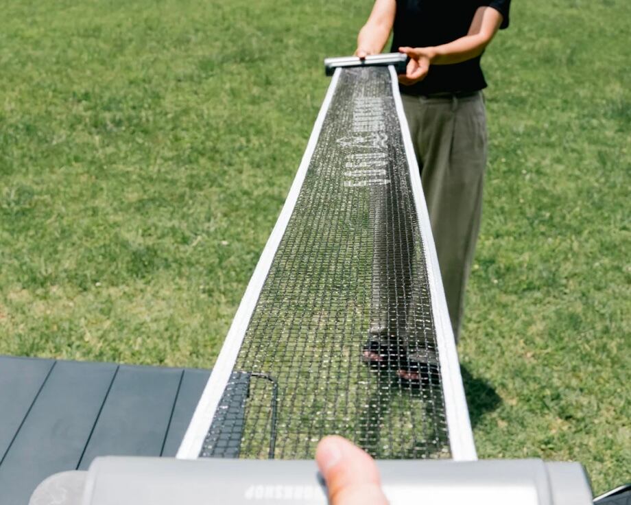 ネットは最大約180cmのテーブル幅に設置可能です。テーブルの厚さは最大約5cmまで対応可能です。